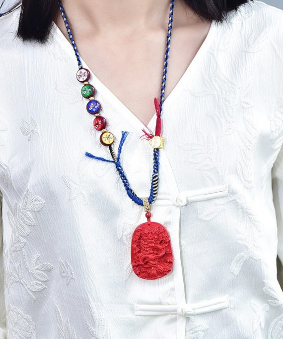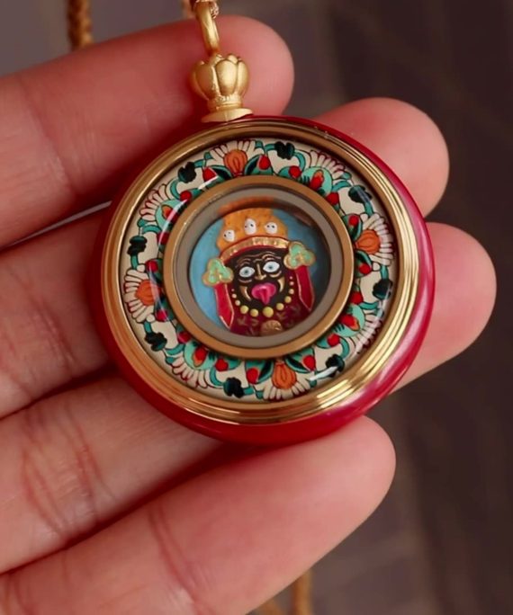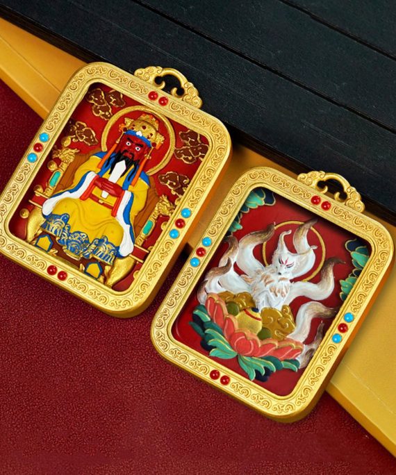 Mysterious gifts Hand-Painted Tibetan Buddhist Brass Cinnabar Pendant Necklace