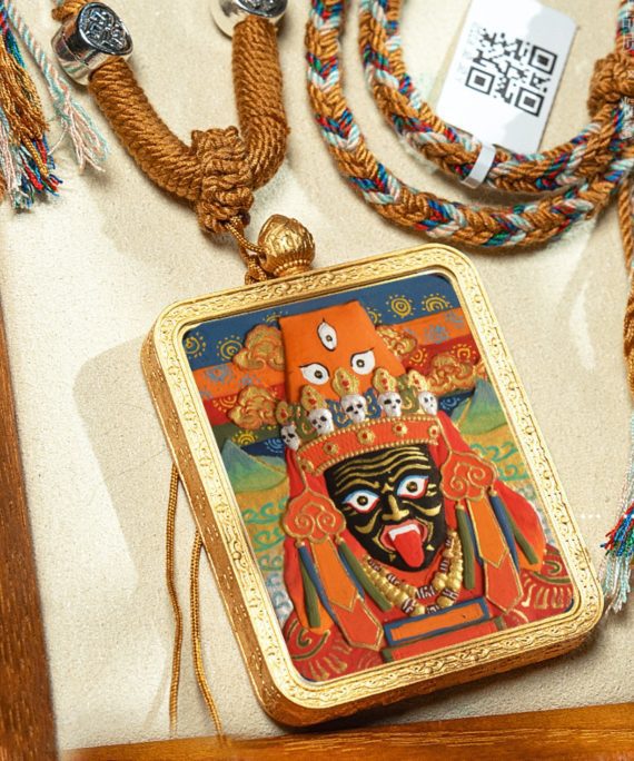 Mysterious gifts Hand-Painted 3D Thangka Brass Buddha Pendant Necklace (Gawu Box)