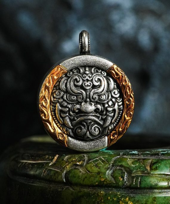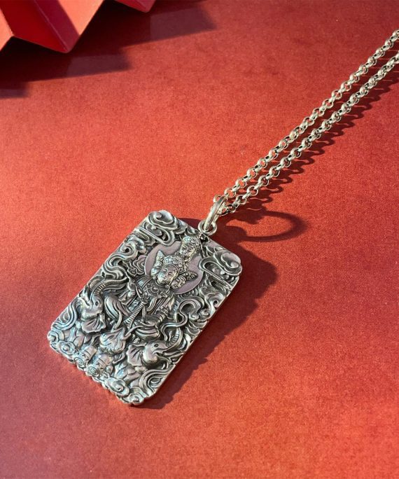 Six-Syllable Mantra Guardian Buddha Silver Pendant Necklace