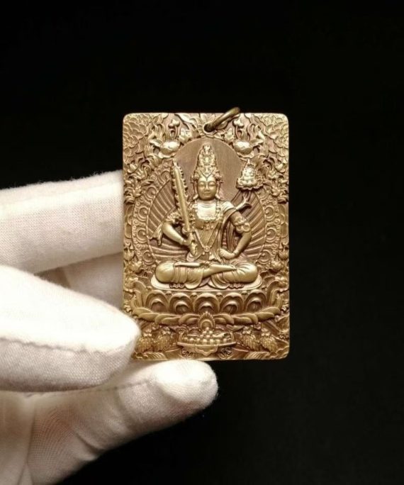 Tibetan Brass Akasagarbha Bodhisattva Amulet Pendant Necklace