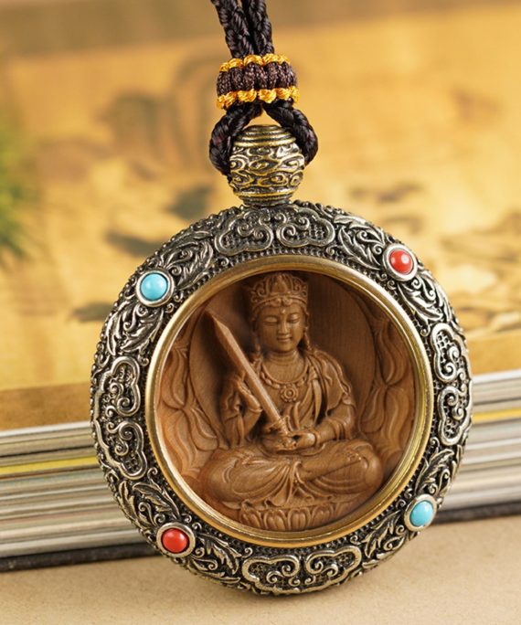 Mysterious gifts Hand-Carved Sandalwood Guardian Buddha Pendant Necklace