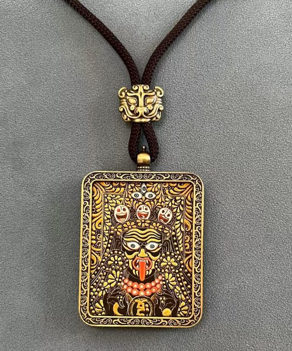 Tibetan Brass Fudō Myō-ō (Acala) Amulet Pendant Necklace