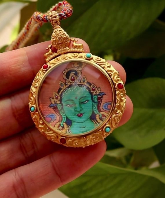 Tibetan Buddhist Green Tara Gemstone Sterling Silver Pendant