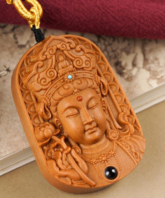 Mysterious gifts Hand-Carved Sandalwood Guanyin Buddha Pendant Necklace