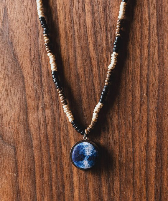 Tibetan Handcrafted Silver & Enamel Dzi Bead Amulet Necklace
