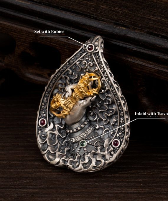 Tibetan Buddhist Vajra Hand Sterling Silver Gemstone Pendant