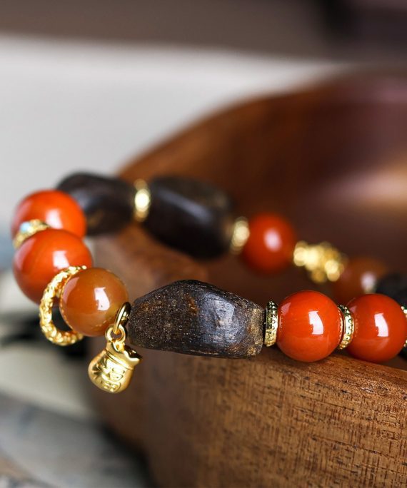 Handcrafted Nanhong Agate and Aloeswood Women’s Bracelet