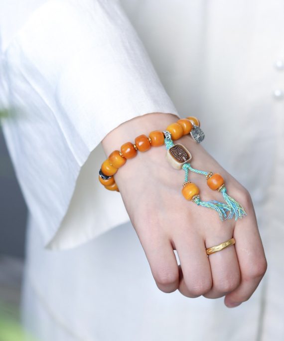 • Tibetan Yak Bone Prayer Bead Thangka Bracelet