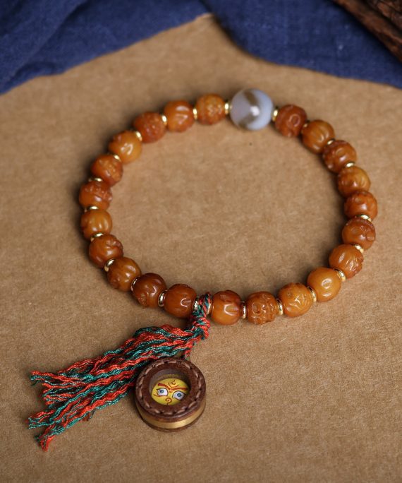 Tibetan Yak Bone Prayer Bead Thangka Bracelet