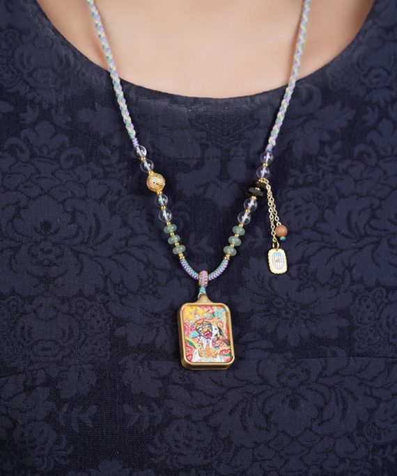 • Hand-Painted Thangka Buddha Pendant Necklace