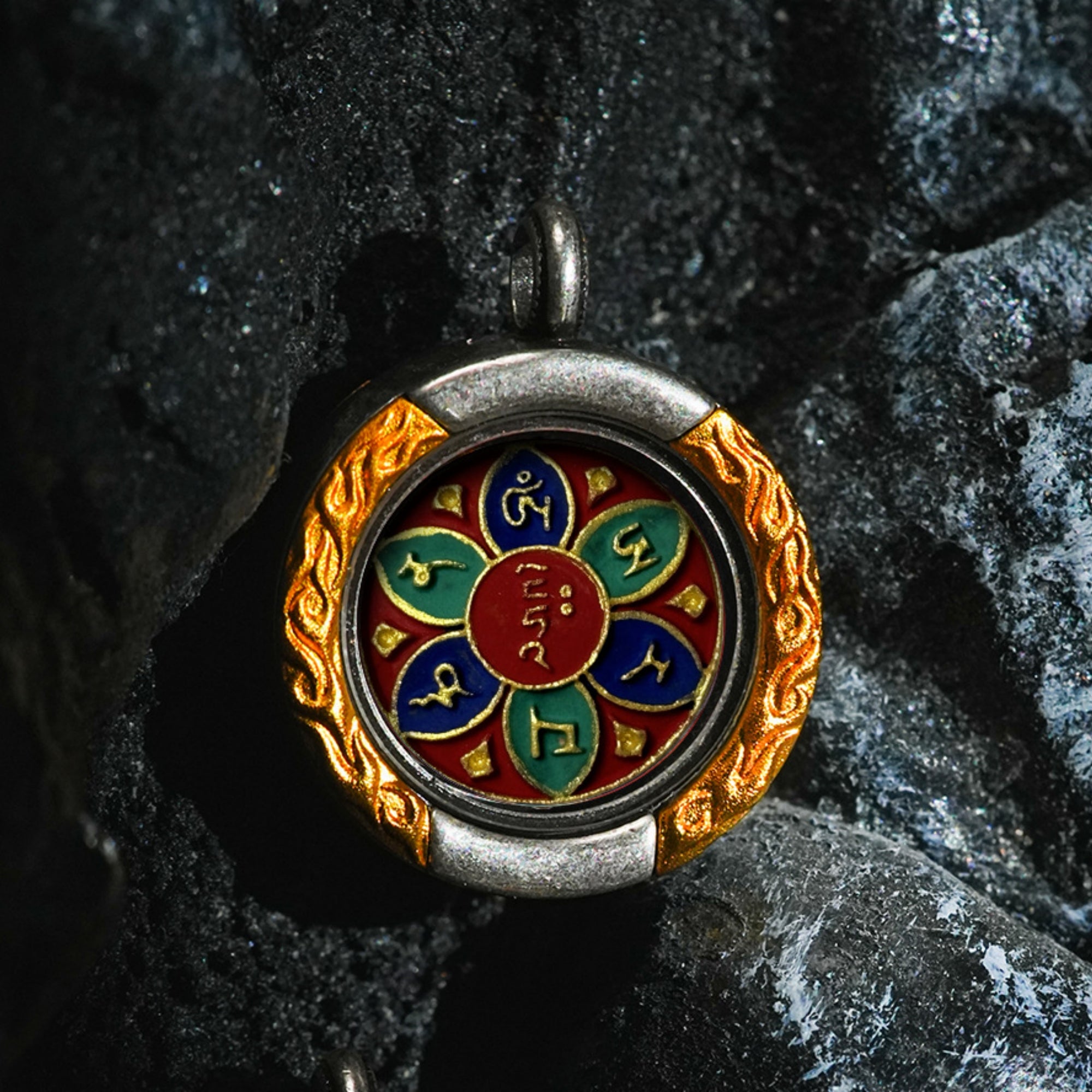 Weighing 21g and featuring a chain length of 60cm (23.6 inches), this distinctive Mysterious gifts Thangka pendant showcases the Zakiram, a revered figure in Tibetan Buddhism. Encased in a durable brass shell with intricate flame patterns, the pendant embodies protection and spiritual warmth.