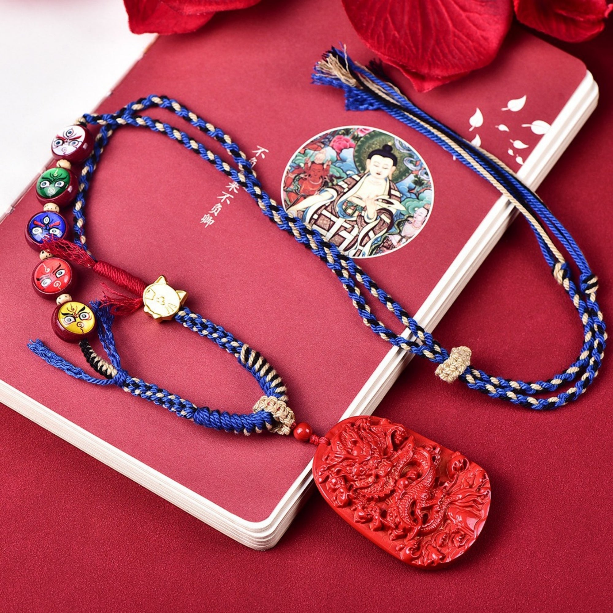 This captivating Eastern dragon pendant is hand-carved by skilled Tibetan artisans from a single piece of cinnabar, a material highly valued in traditional Eastern culture for its protective properties.