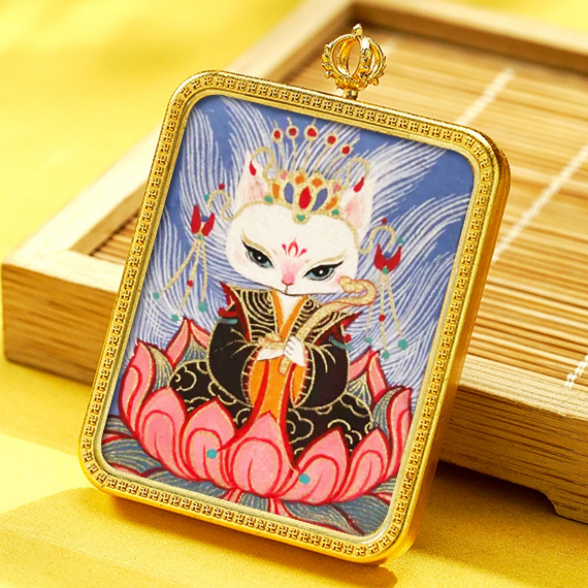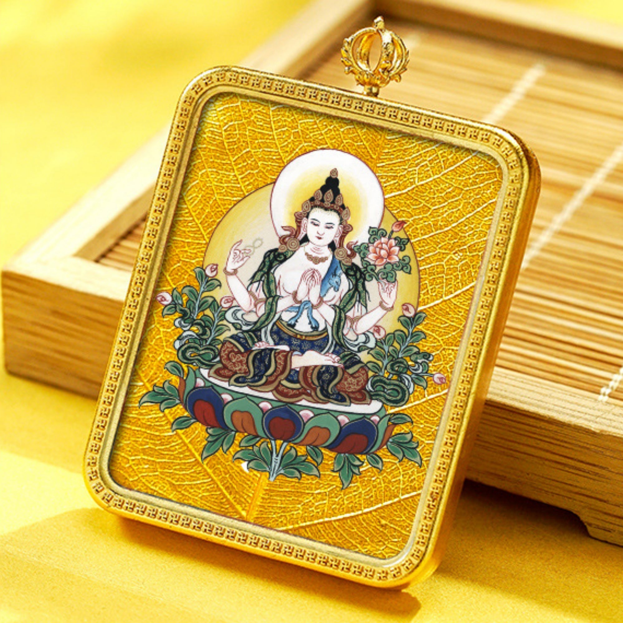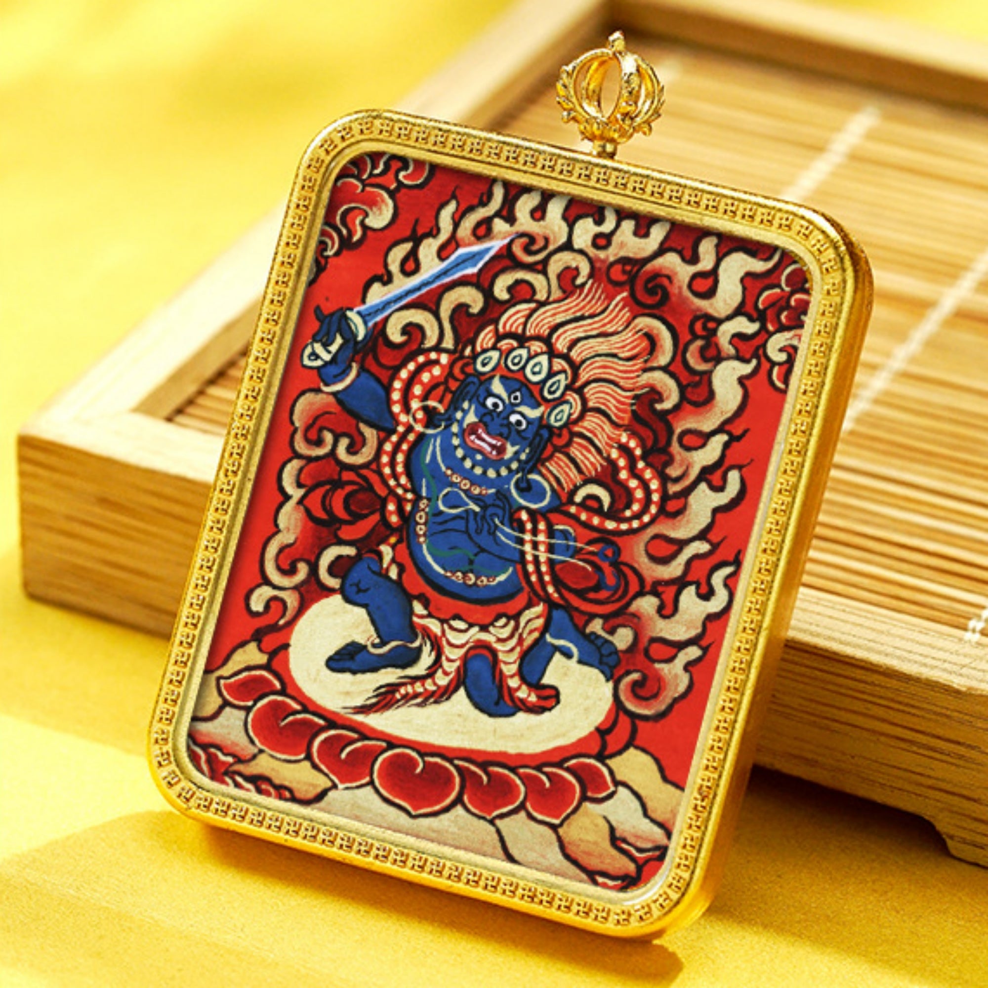 This stunning pendant necklace is crafted from durable brass and features a hand-painted design inspired by Tibetan Thangka art. It serves as both a beautiful accessory and a powerful amulet, offering spiritual protection and a connection to ancient Tibetan traditions.