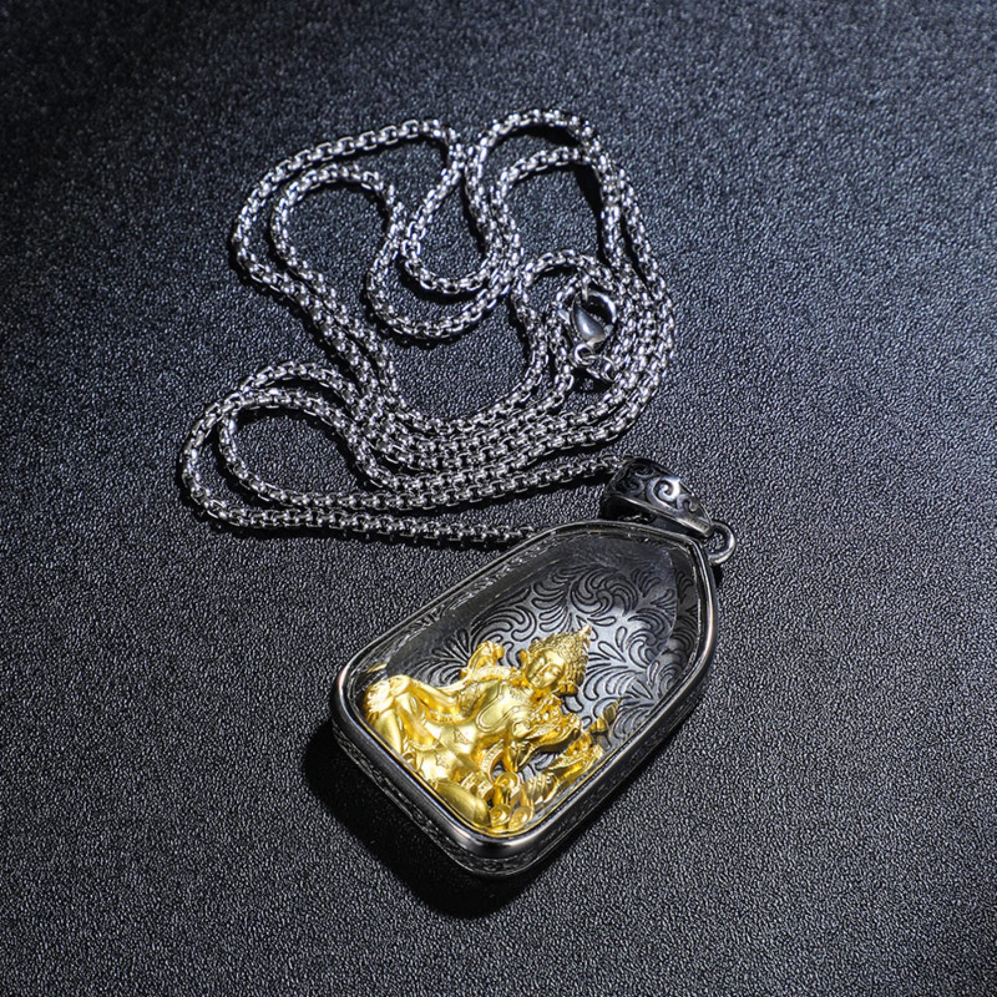 Featuring a detailed Buddha figure encased in a high-transparency crystal and set in durable titanium steel, the necklace enhances both the symbolic power of the Buddha image and the natural beauty of the crystal.