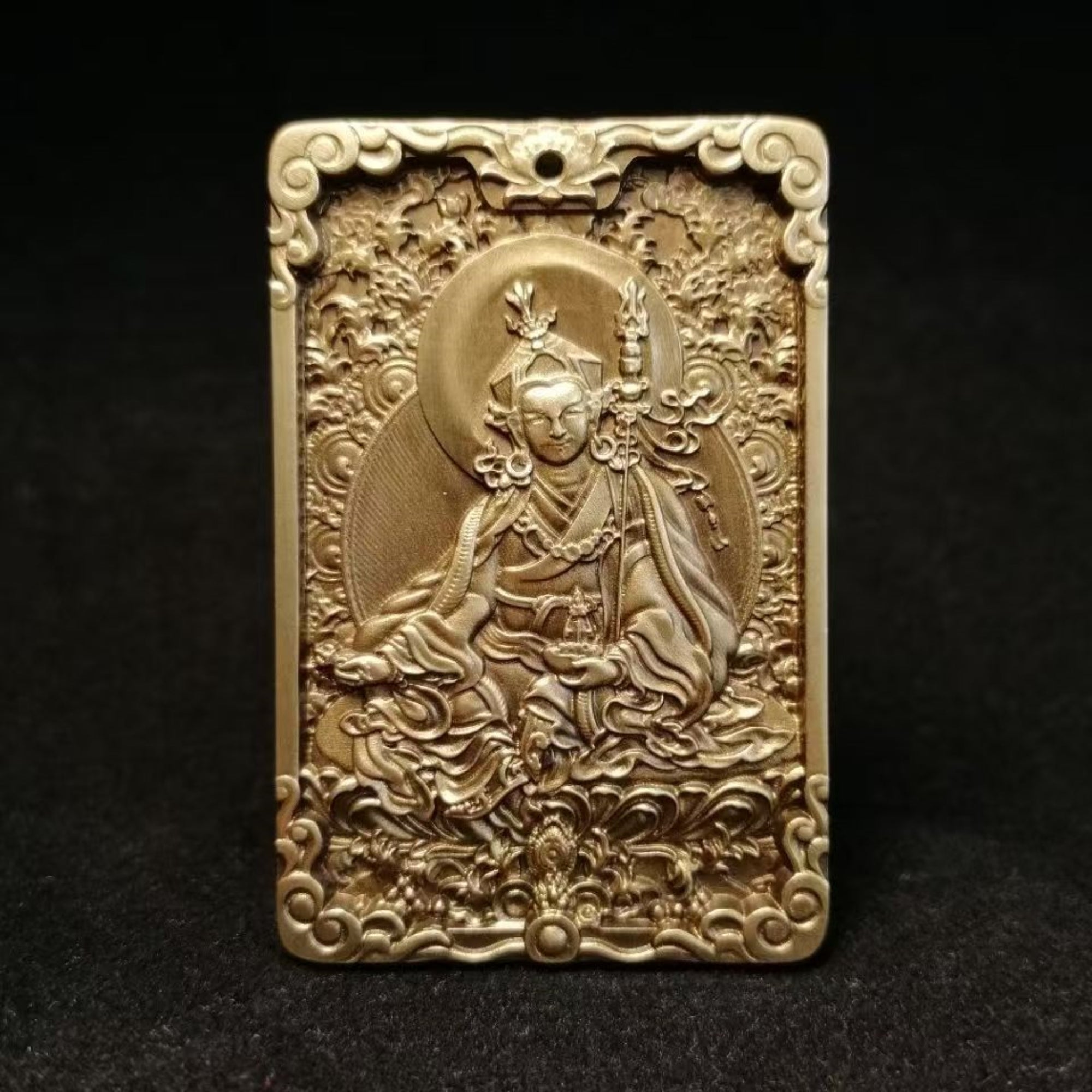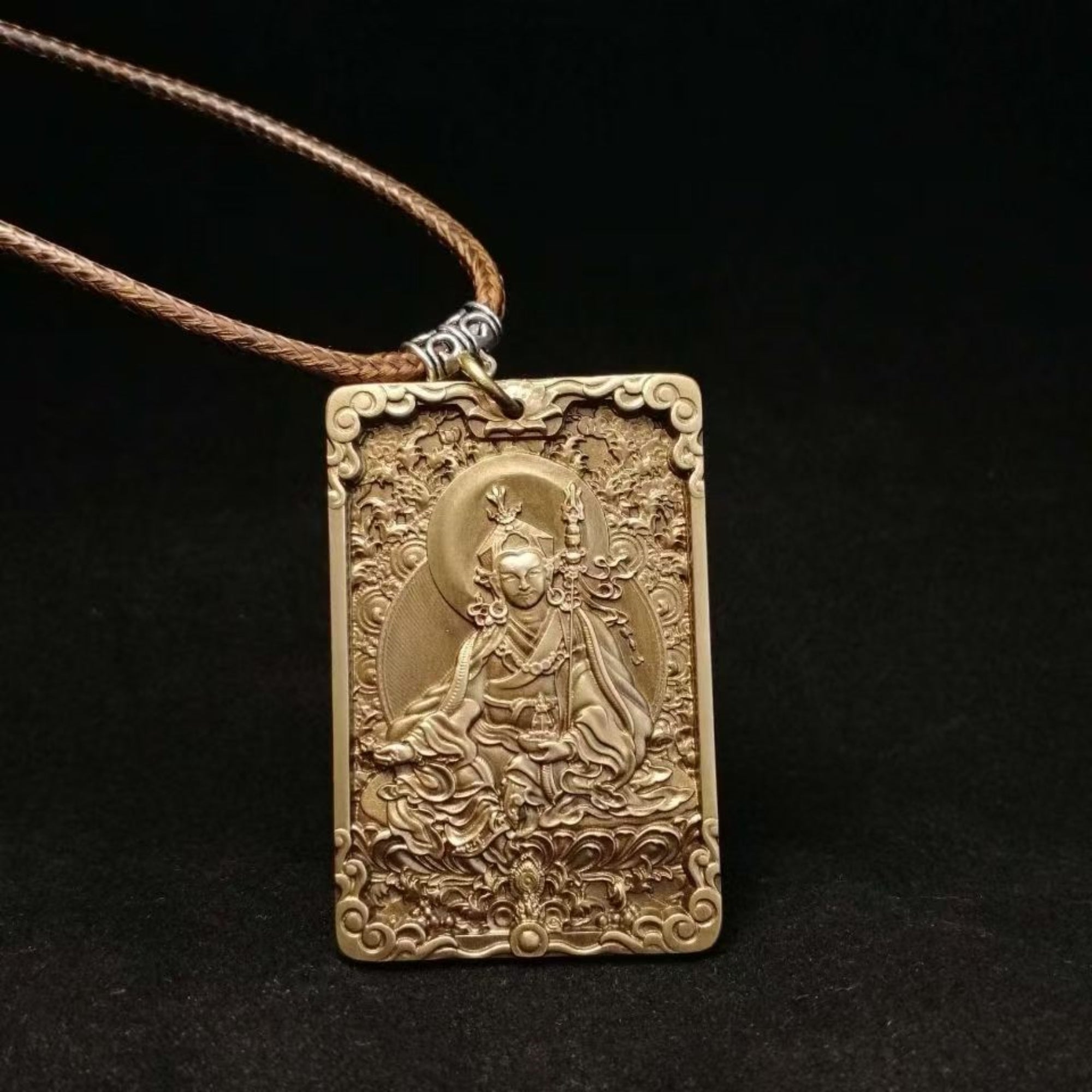 Handcrafted by Tibetan artisans, this talisman pendant is cast in warm brass and features a detailed relief of Padmasambhava (Guru Rinpoche). The reverse is engraved with his mantra in Tibetan script. Compact and meaningful, it makes a thoughtful gift or a personal amulet for protection, guidance, and steady practice.