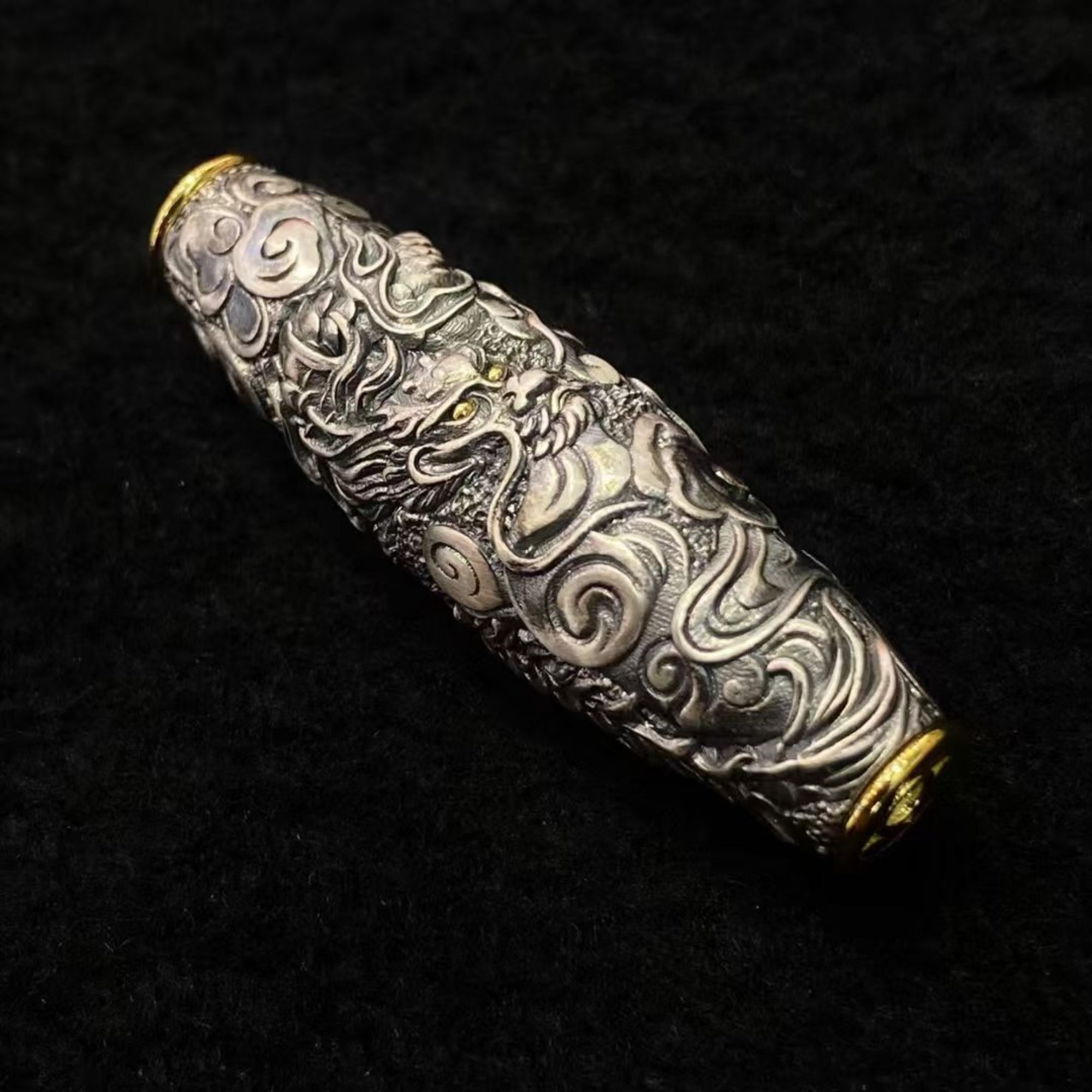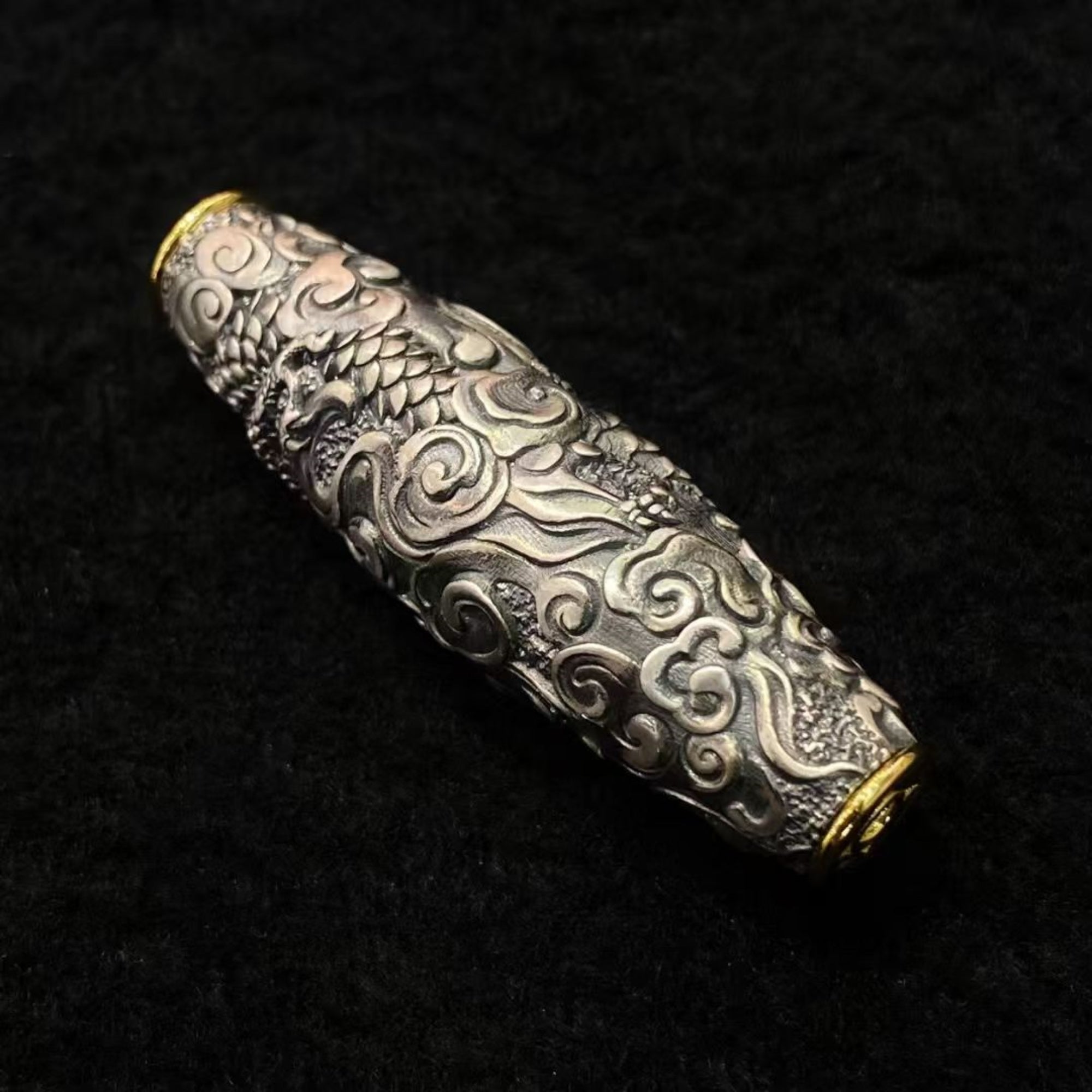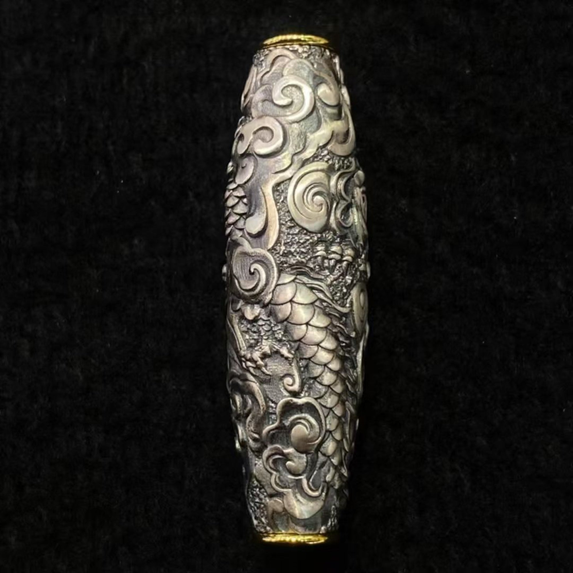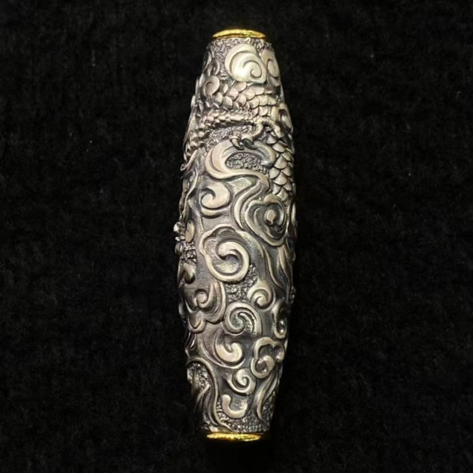 Crafted by Tibetan artisans in solid S925 silver, this 45mm amulet channels the Celestial Dragon (Druk) – Tibet’s sovereign of skies and spiritual currents. The elongated dzi form amplifies its power to: