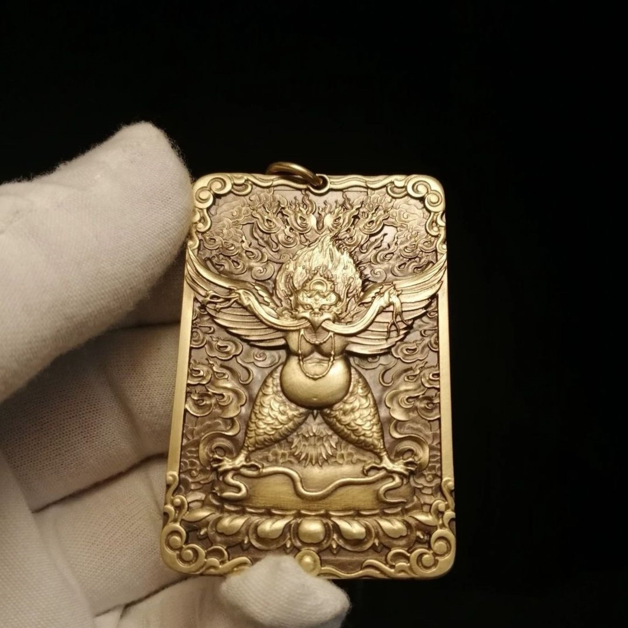 Crafted by Tibetan artisans in aged brass (50g, 40x60mm), this amulet embodies Garuda – Tibet’s mythic serpent-devourer and liberator from karmic chains. Wings outstretched to clear stagnant energy, it merges celestial power with tangible protection.