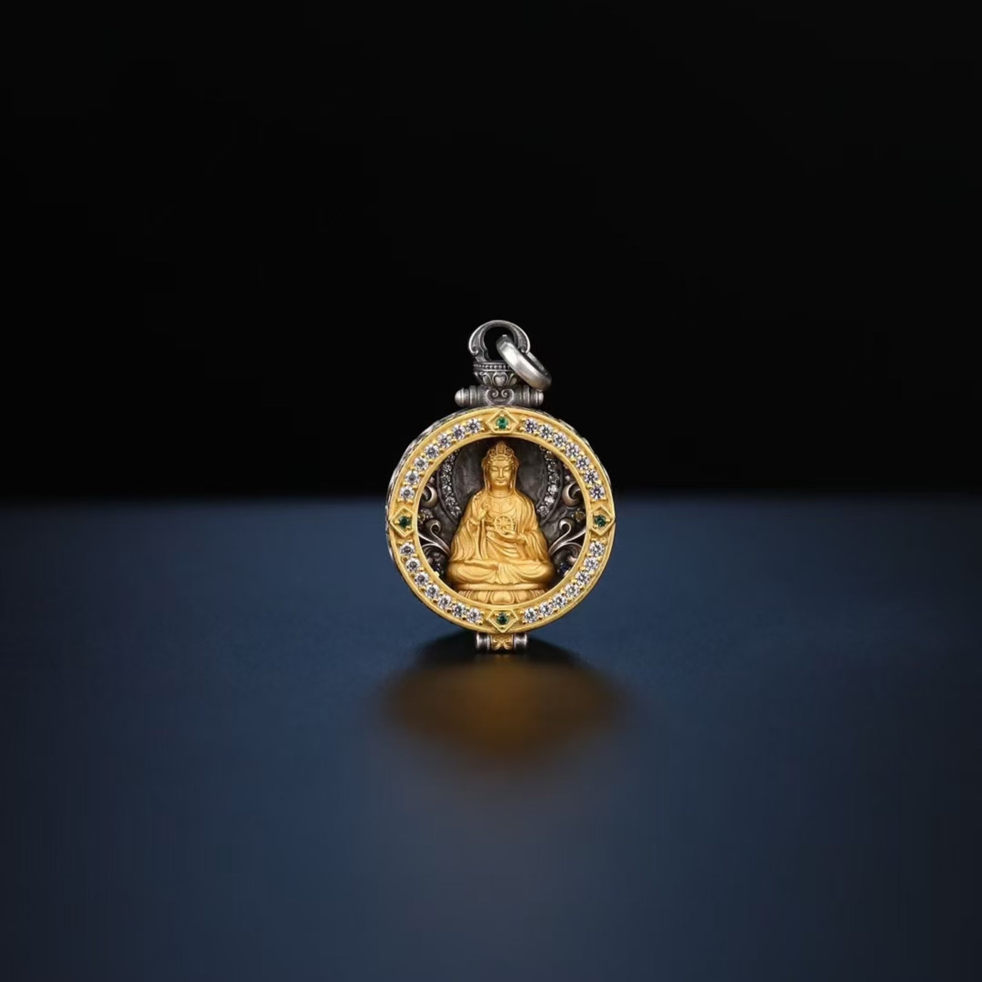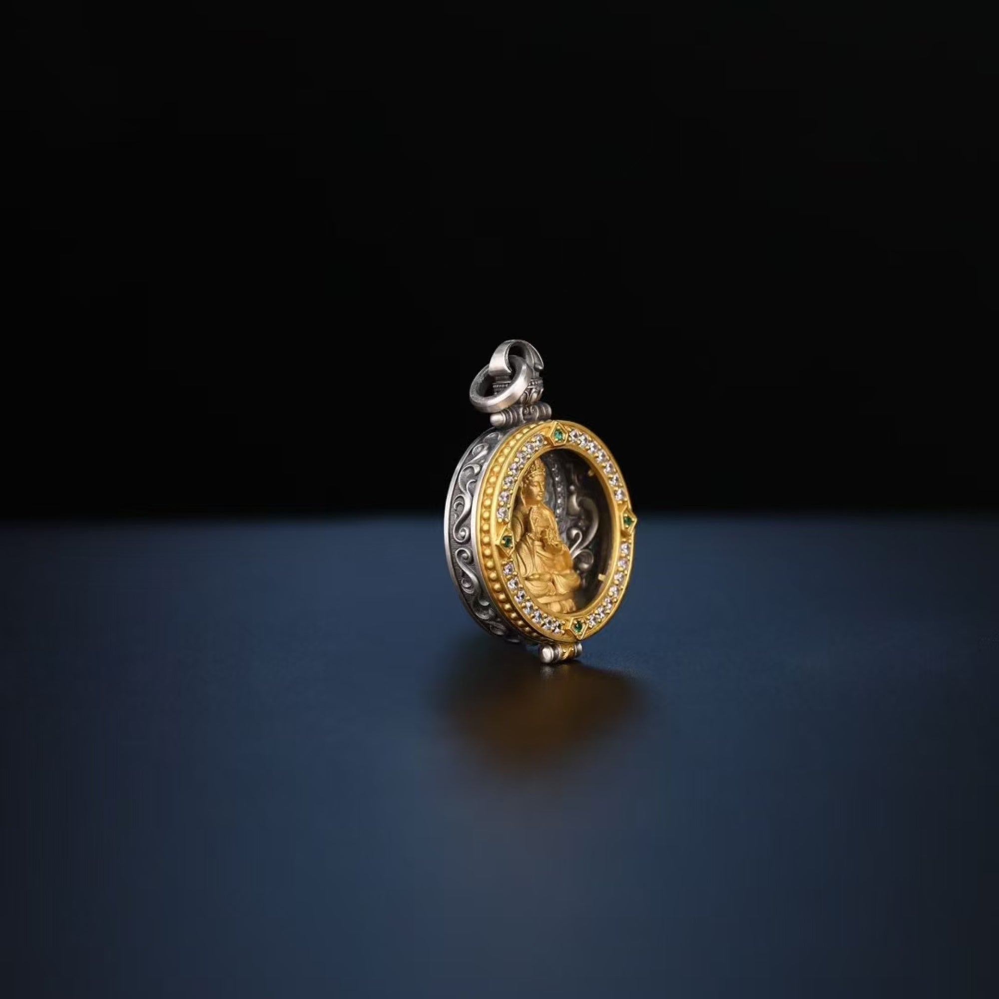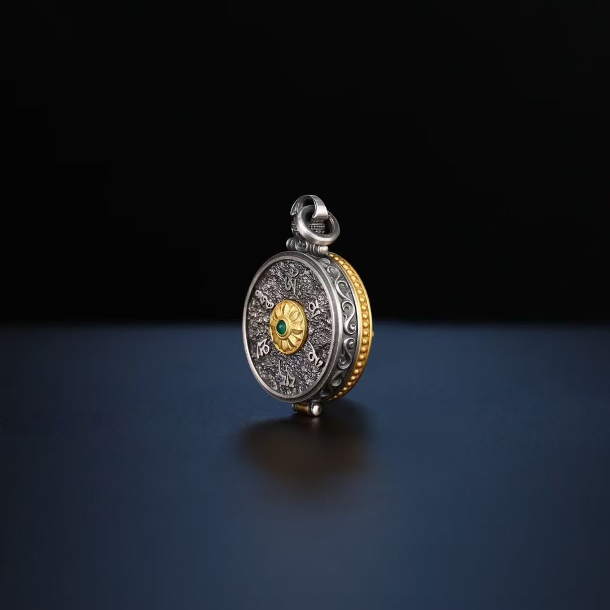 Gawu Box Craft: Ritually charged, the 23mm circular pendant merges sacred art with protection – the mantra engraving amplifies its guardian energy.