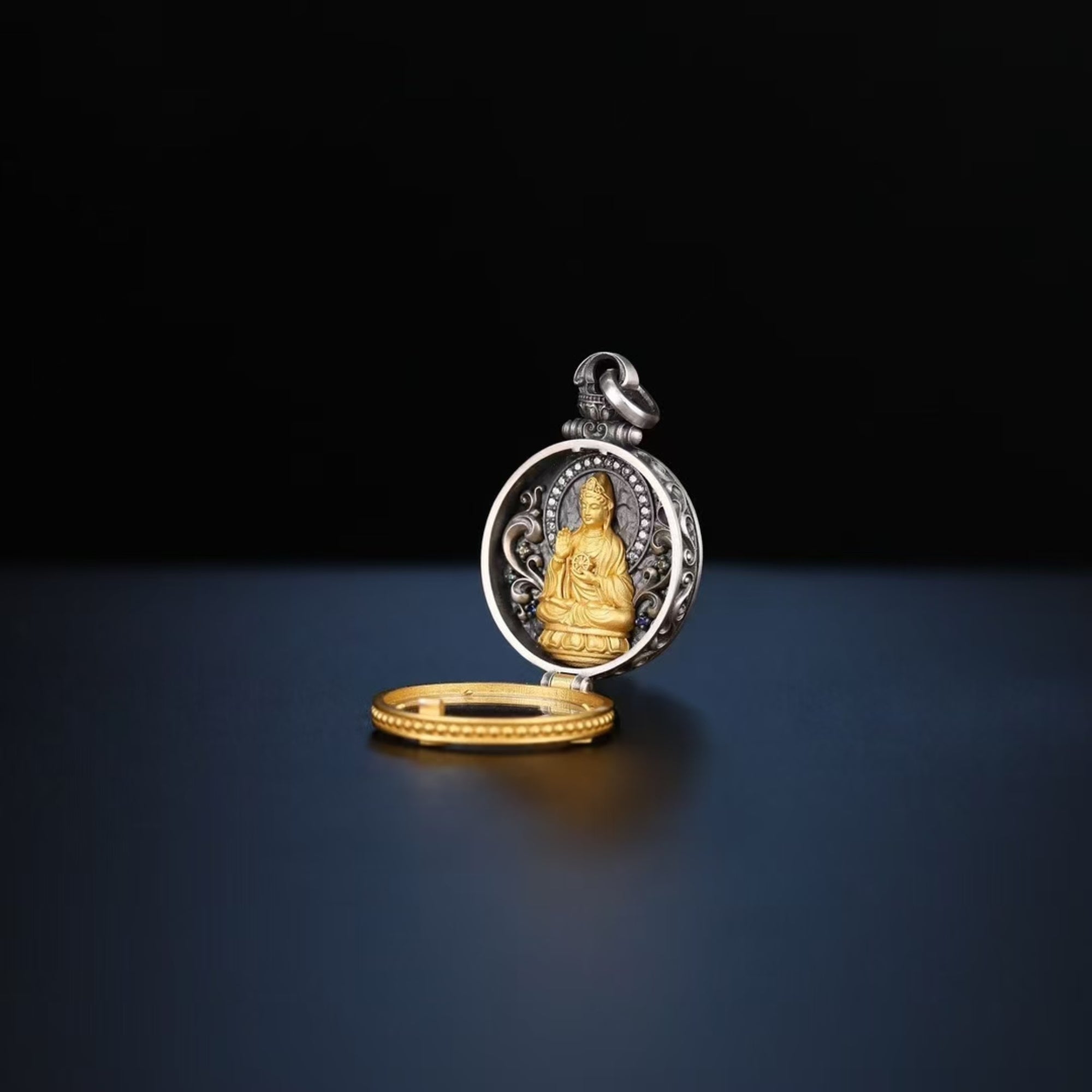 Forged in Tibet’s highlands, this talismanic pendant encases a S925 silver carving of Guanyin Bodhisattva (Avalokitesvara) – embodiment of mercy and wisdom – within a ritual-grade silver Gawu Box. The reverse side bears the Six-Syllable Mantra (“Om Mani Padme Hum”), etched for unwavering spiritual protection.