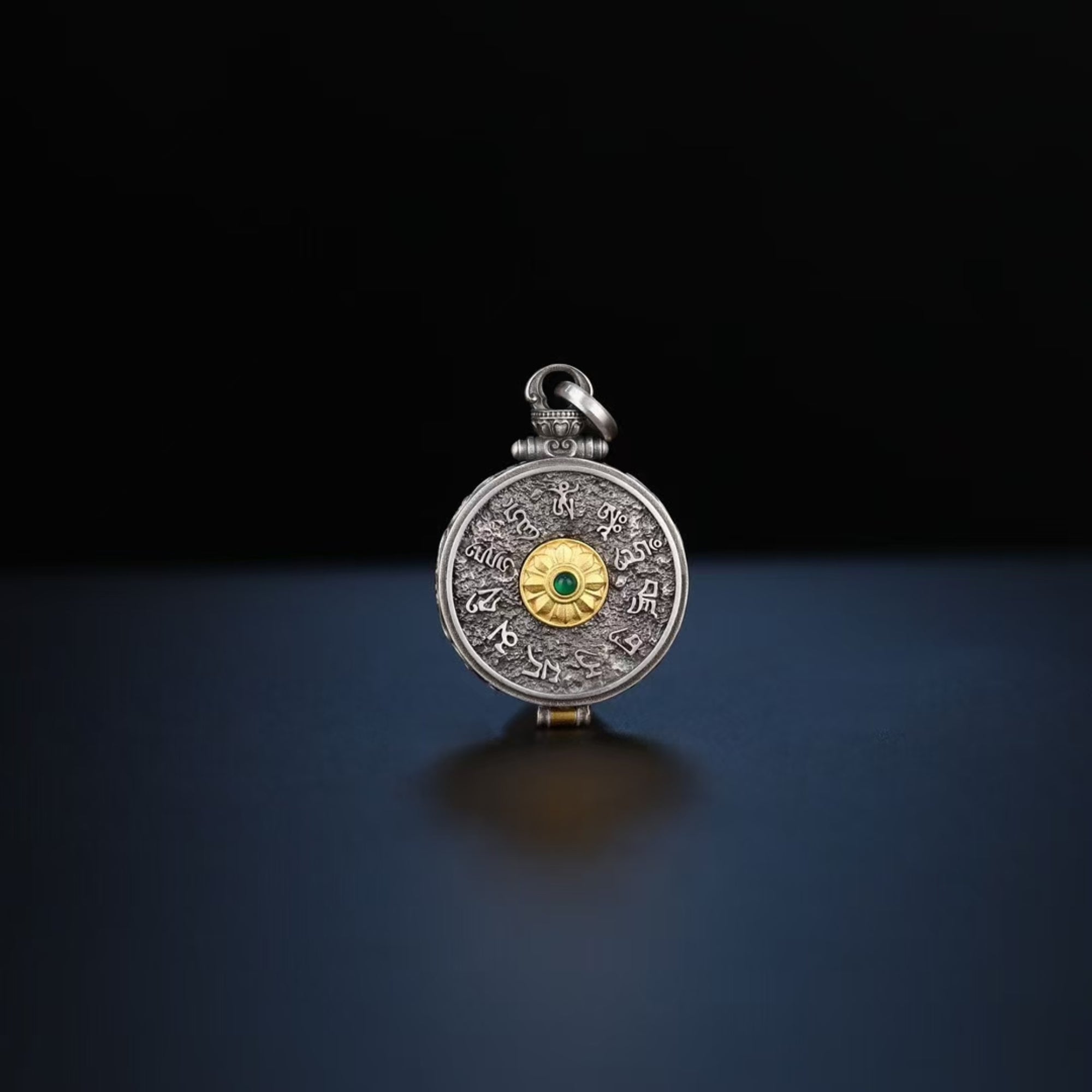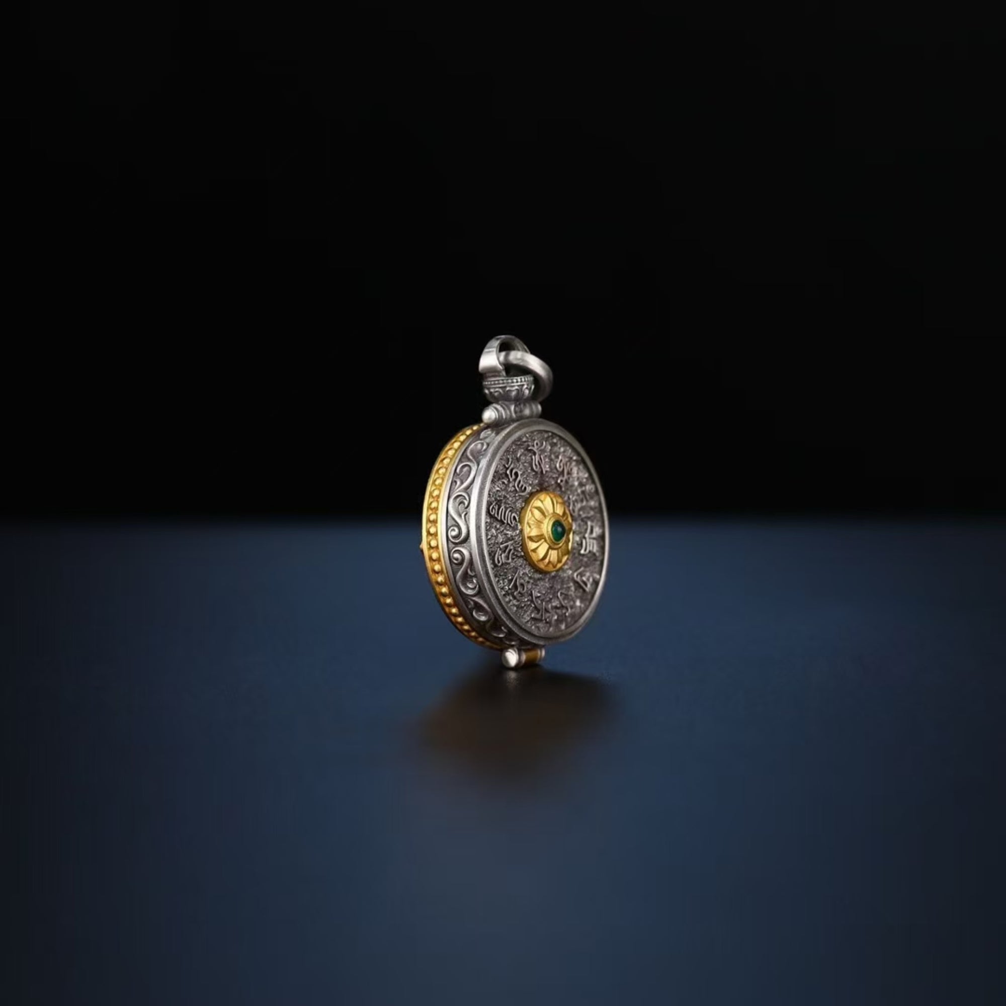 Gawu Box Ritual: The 23mm circular amulet merges sacred artistry with spiritual purpose — the engraved mantra amplifies its power as a guardian talisman.