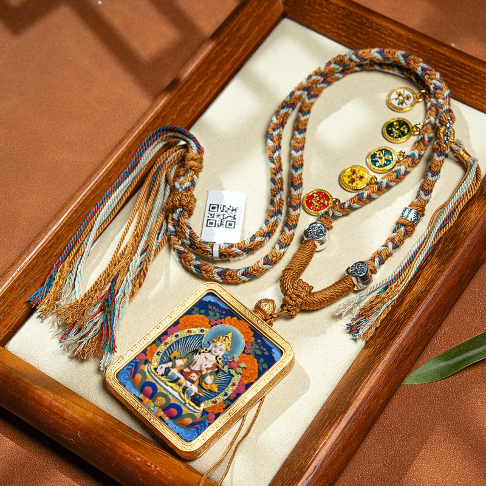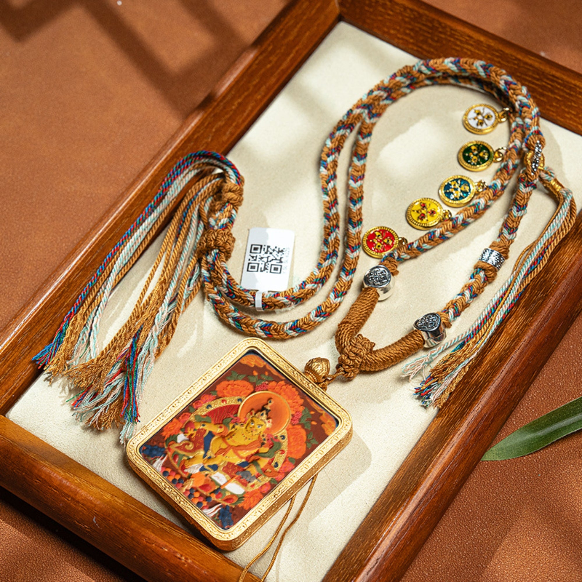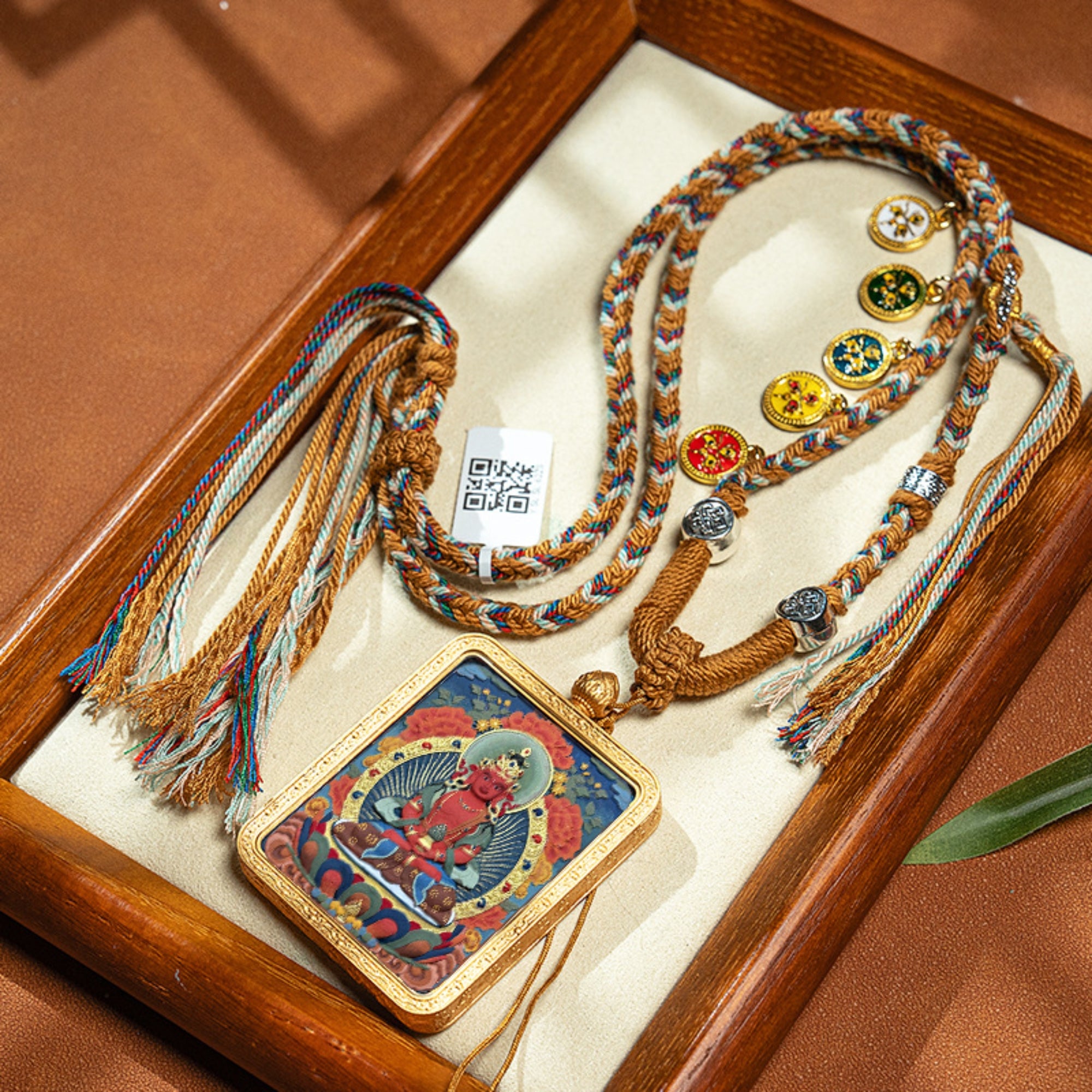Buddha Thangka: Thangkas are devotional paintings used for meditation and blessings. Wearing this tiny thangka keeps its peaceful energy and wisdom close at hand.