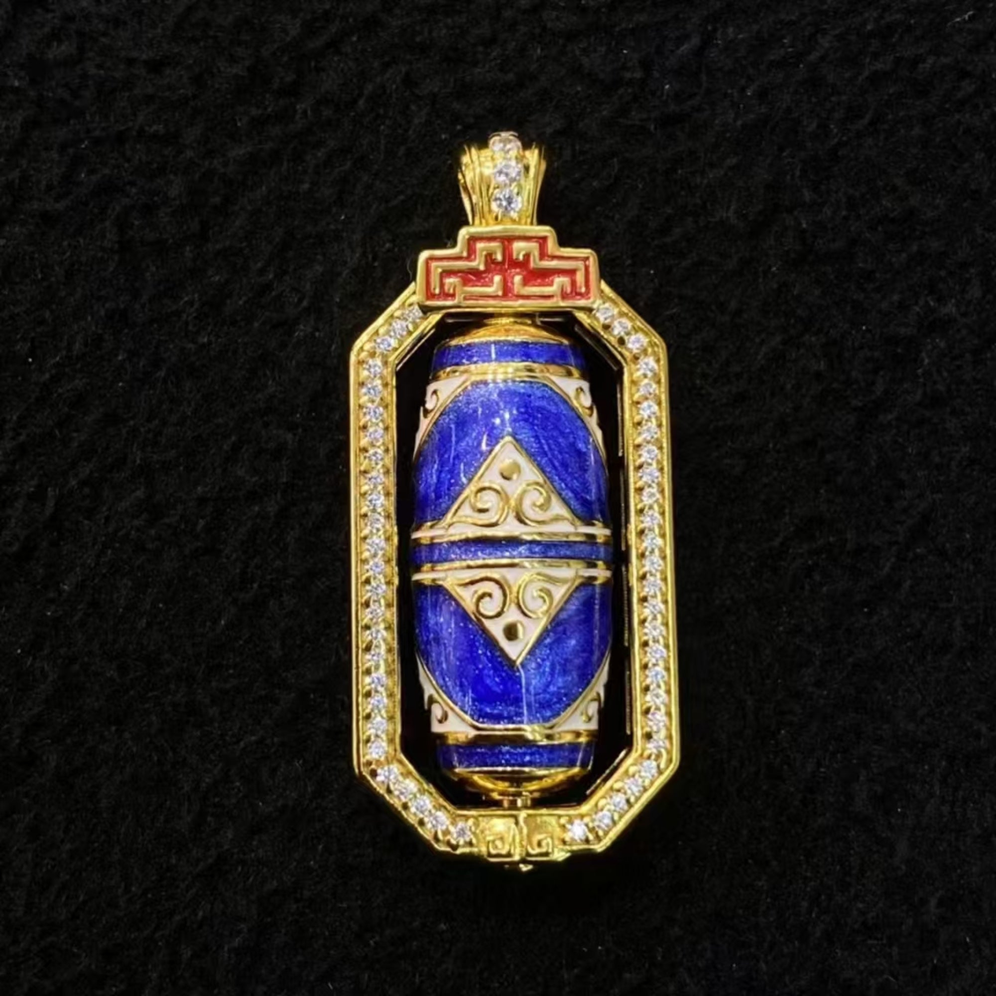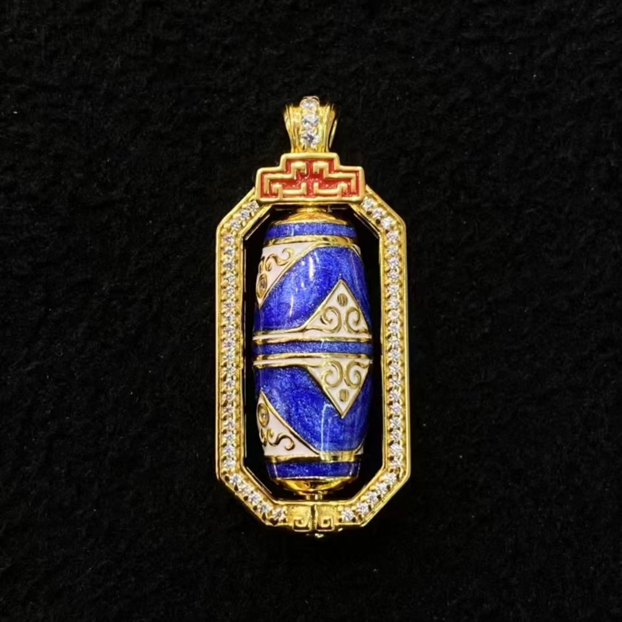 Crafted by Tibetan artisans, this amulet unites a natural Dzi bead — the revered “Heaven’s Eye” talisman — with Silk Road-era cloisonné enamel and glimmering crystal accents. Housed in S925 silver, it carries the Himalayas’ timeless wisdom as wearable armor.