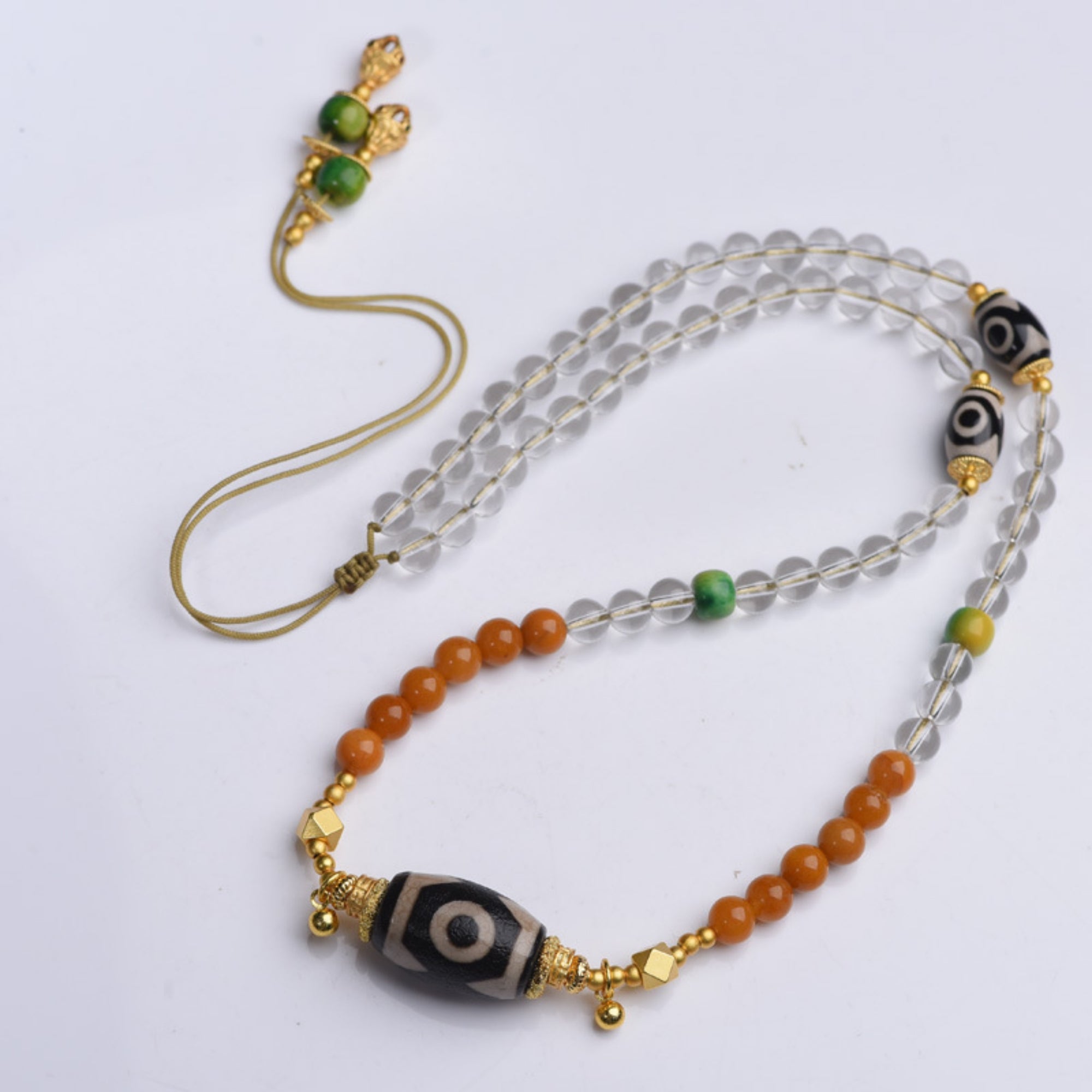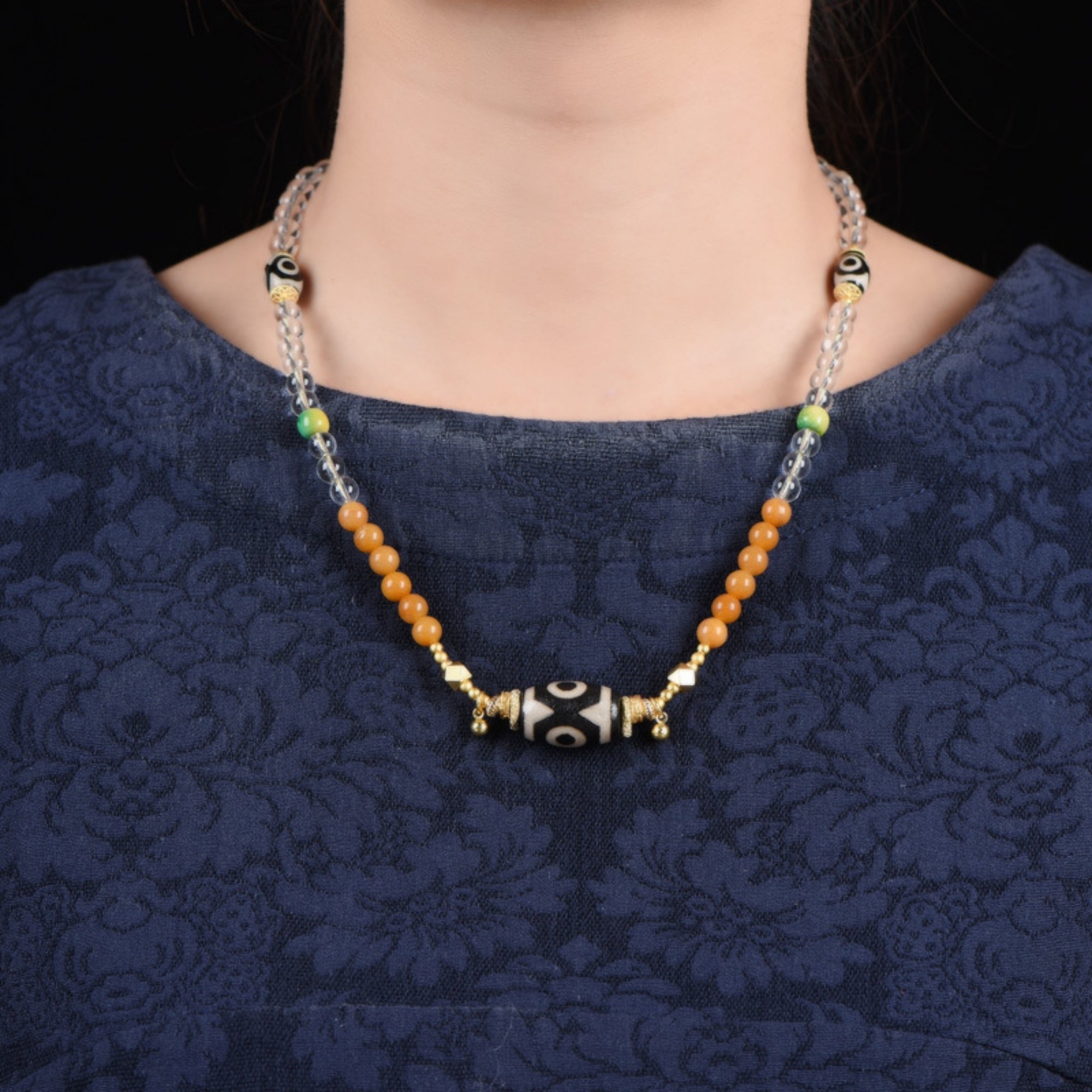 This Tibetan Natural Crystal Dzi Bead Necklace is more than just a piece of jewelry; it is a wearable symbol of spiritual protection and a connection to the rich cultural heritage of Tibet.