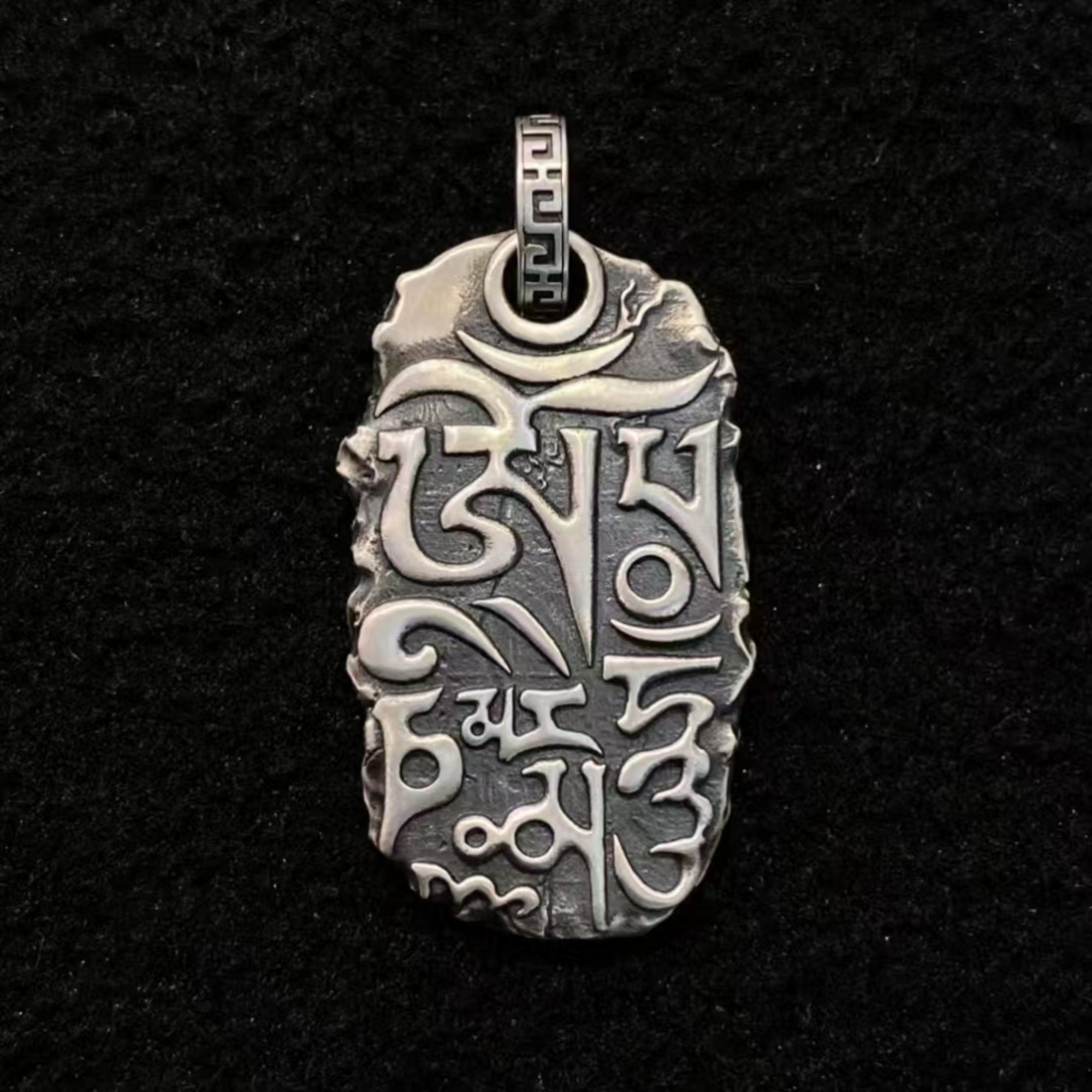 Hand-forged by Tibetan artisans in ritual-grade S925 silver, this minimalist amulet (19mm x 33mm) distills Buddhism’s most powerful mantra into wearable armor. Front bears the engraved “Om Mani Padme Hum“; reverse features a vajra symbol – double-sided spiritual defense.