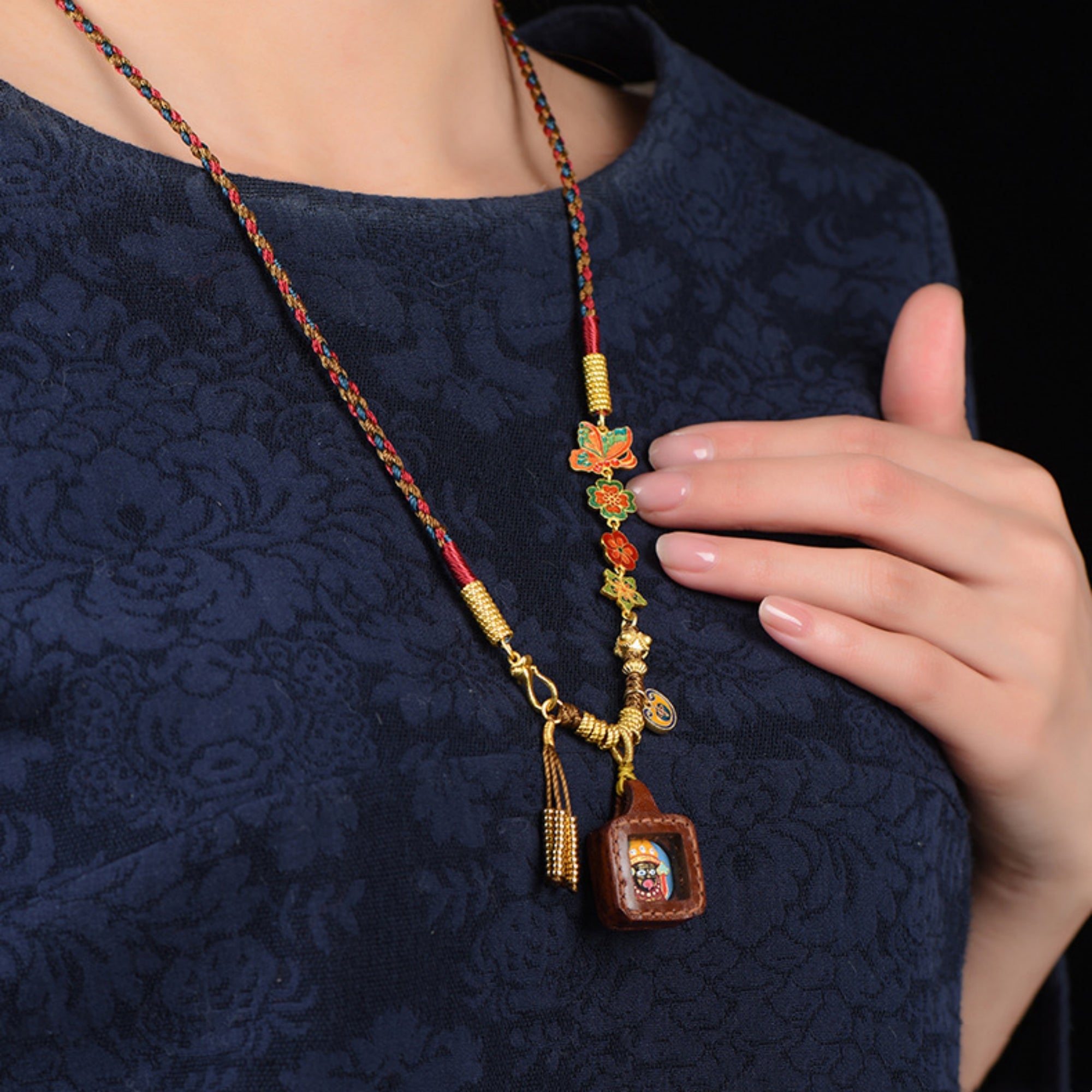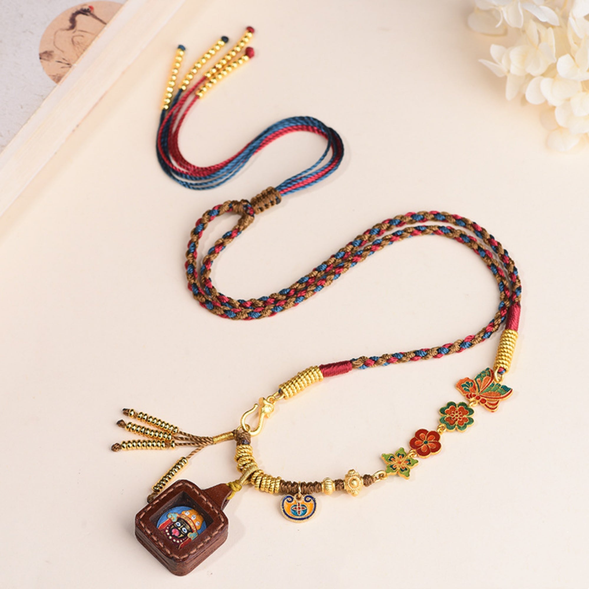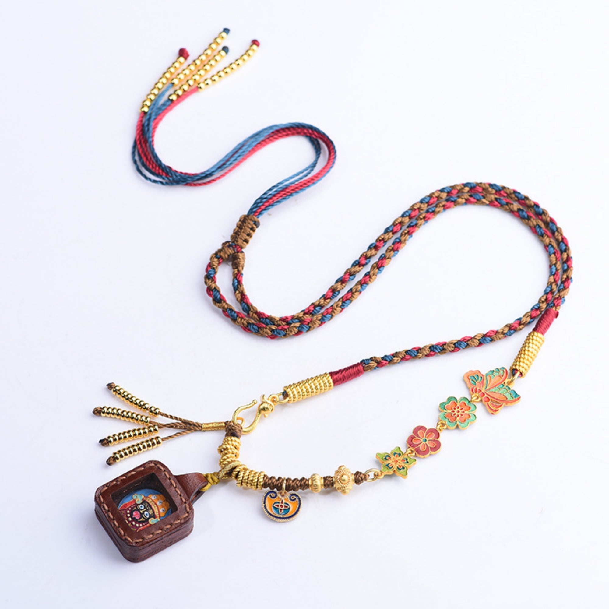 Crafted by the skilled hands of Tibetan artisans, the Zakiram Thangka Necklace is a piece of wearable art that captures the essence of Tibetan Buddhism.
