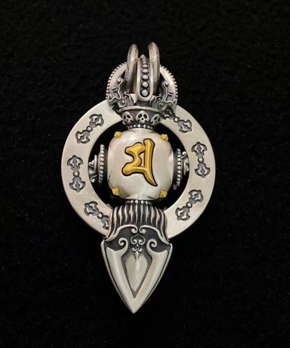 Tibetan Silver Ritual Phurba Amulet Pendant