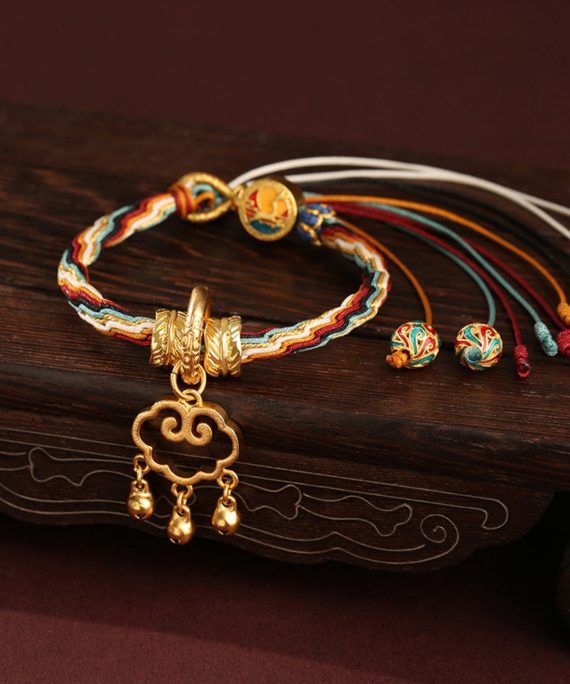 Handcrafted Cotton Cord Thangka Pendant Replacement Chain with Copper Vajra & Lotus Accents