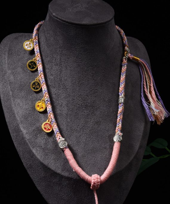Handwoven Tibetan Five-Color Wealth Deity Thangka Pendant Replacement Chain