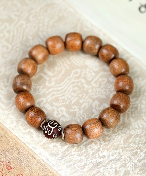 Hetian Jade Cinnabar “Om Mani Padme Hum” Prayer Beads Bracelet